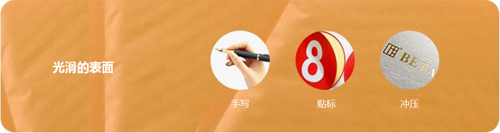 | 材料坚韧的牛皮层压与屏障泡沫 | 表面容易接受油墨,邮票和标签 |